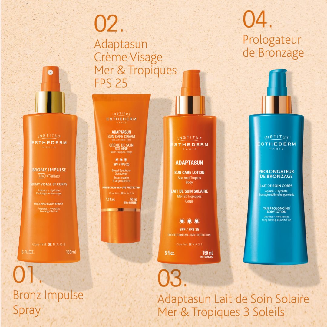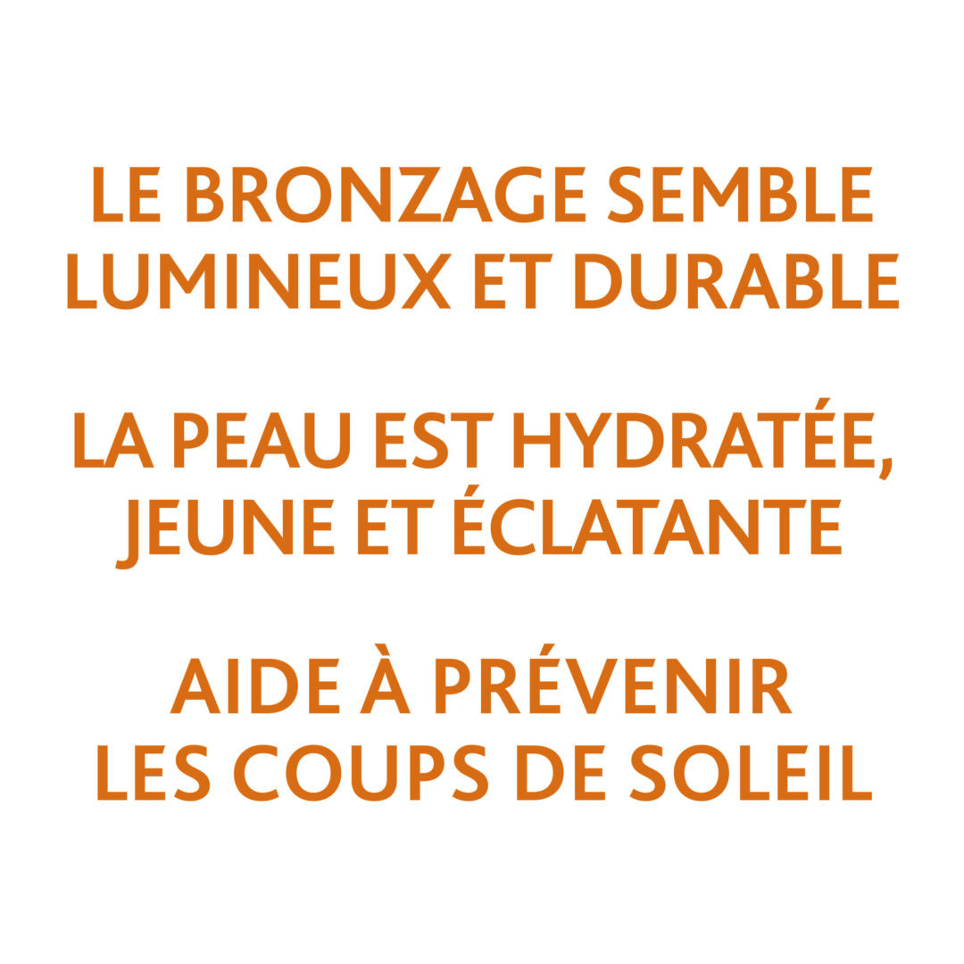 Cible les facteurs responsable du vieillissement pour une peau idéalement hydratée, souple et éclatante de jeunesse. Un bronzage lumineux, rapide et longue durée.