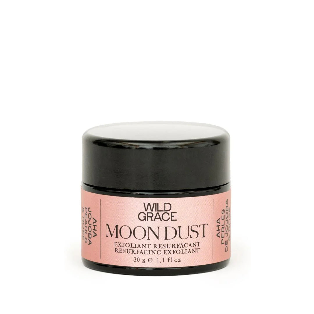 MOON DUST, votre ultime exfoliant 2-en-1 pour une peau radieuse. Notre formule innovante combine une exfoliation mécanique douce avec des perles de jojoba et les bienfaits renouvelants de l'acide alpha-hydroxy (AHA) pour une exfoliation efficace et tout en douceur.