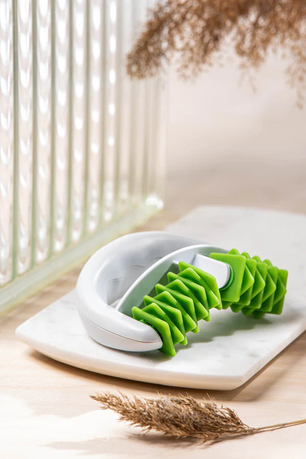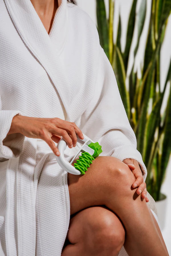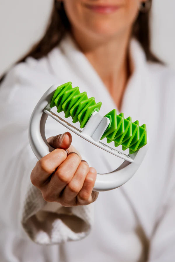 La Roulette O'terra offre un massage en profondeur, ciblant les tissus pour réduire la rétention d’eau, améliorer la circulation sanguine, et soulager la sensation de jambes lourdes.