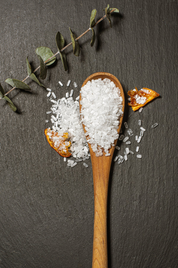 Les Sels de bain - Tangerine & eucalyptus combinent relaxation musculaire, aromathérapie et bienfaits. Ils permettent une hydratation en profondeur et aide à raffermir la peau.