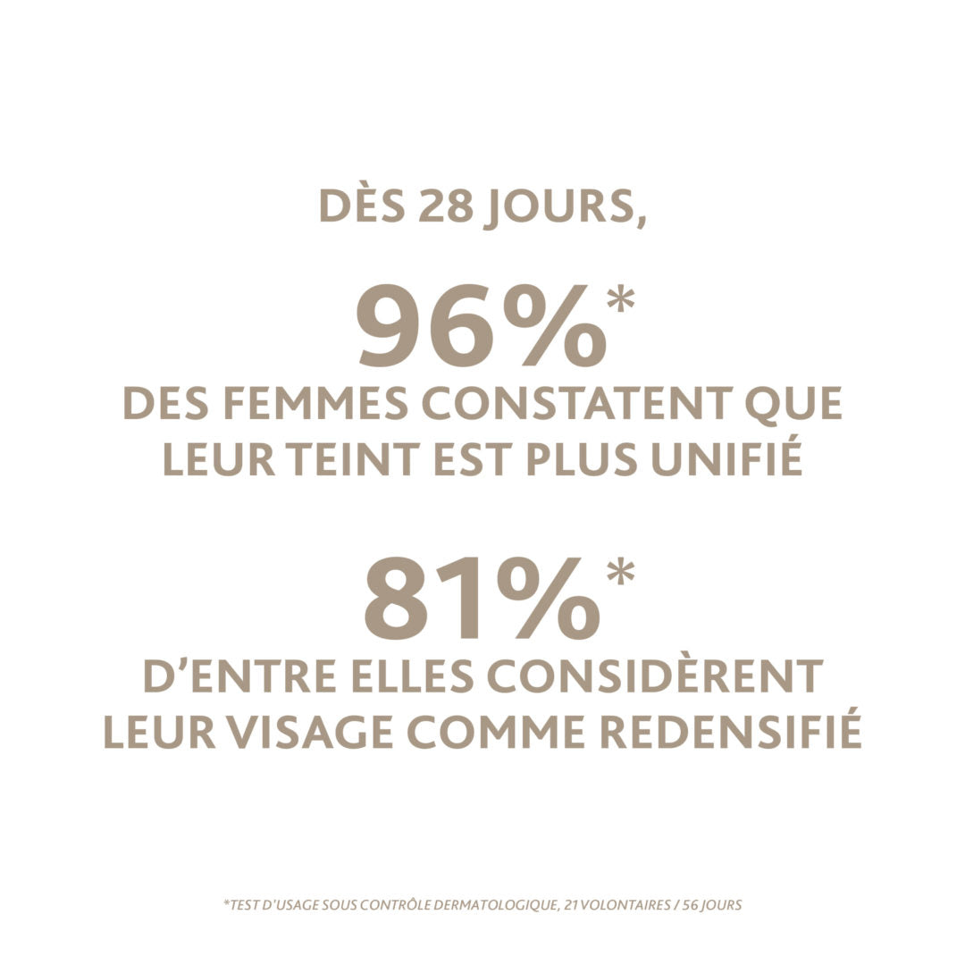 Appliquer matin et soir sur l’ensemble du visage, du cou et du décolleté.